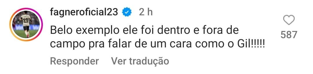 “Belo exemplo ele foi dentro e fora de campo para falar de um cara como o Gil!”, escreveu Fagner.