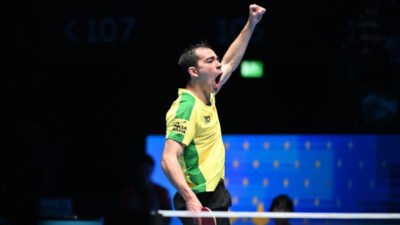 Mais uma marca histórica na carreira! O brasileiro Hugo Calderano venceu o japonês Tomokazu Harimoto, número 3 do mundo, por 4 sets a 1 (8/11, 11/8, 11/8, 11/8 e 12/10), nesta sexta-feira (18/4) e avançou à semifinal da Copa do Mundo de tênis de mesa . Essa é a melhor marca do Brasil na competição na história.