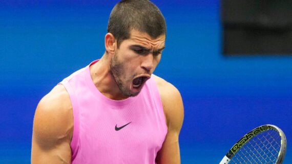 Na semifinal, Alcaraz passou pelo último dos membros do “Big Three” ainda na ativa, Novak Djokovic, 38 anos e número 7 do mundo, de maneira dominante: em sets diretos, com parciais 6-4, 7-6 (3) e 6-2, tendo o serviço quebrado apenas uma vez.