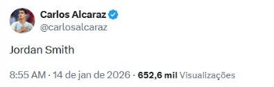Carlos Alcaraz na rede social X após vitória de Jordan Smith