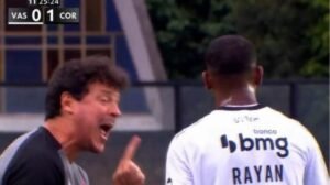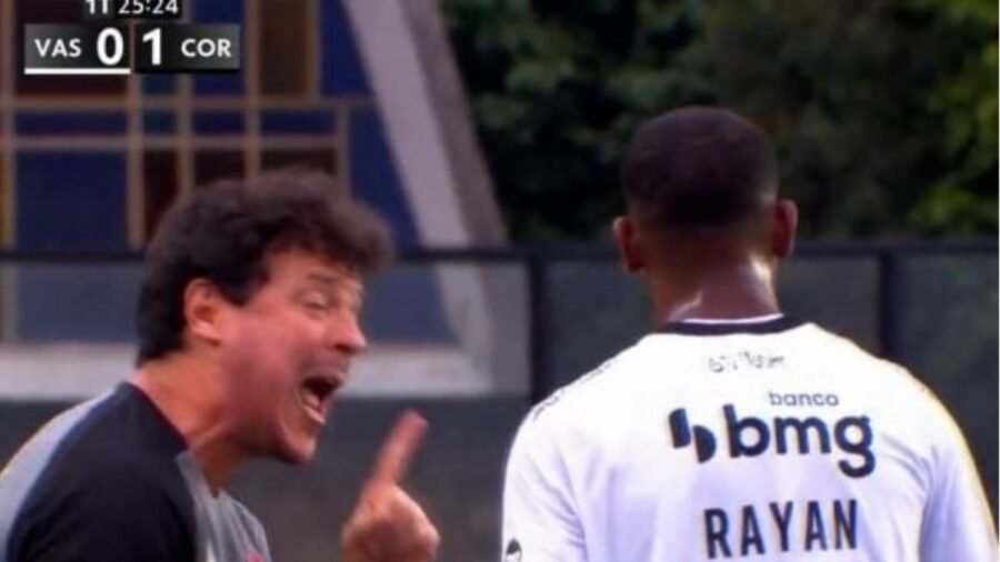 A derrota por 3 a 1 para o Corinthians, na tarde do último domingo (24/8), não ficou marcada apenas pelo novo revés do Vasco em São Januário, mas também por um momento tenso. Câmeras de transmissão flagraram uma cobrança acima do tom por parte do técnico cruz-maltino, Fernando Diniz, ao jovem Rayan, de 19 anos – desvendada posteriormente pelo especialista em leitura labial Gustavo Machado.