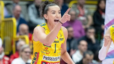 Eleita MVP do campeonato nacional em outubro do ano passado, a cria do Mackenzie é a segunda jogadora com maior aproveitamento (46,5%) e eficiência (41,3%) em ataques na liga, abaixo apenas da ponteira Ting Zhu, companheira dela no Conegliano, que tem, respectivamente, 46,9% e 45%.