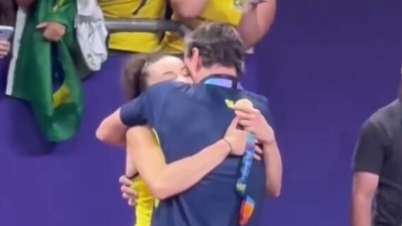 Após a vitória da Seleção Brasileira Feminina de Vôlei sobre a Polônia por 3 a 0 nesse domingo (4/8), na Arena Paris Sul, pela terceira rodada da fase de grupos nos Jogos Olímpicos de Paris 2024, o ex-jogador Giba ‘premiou’ a ponteira Gabi, destaque da equipe no confronto, com uma medalha de ouro.