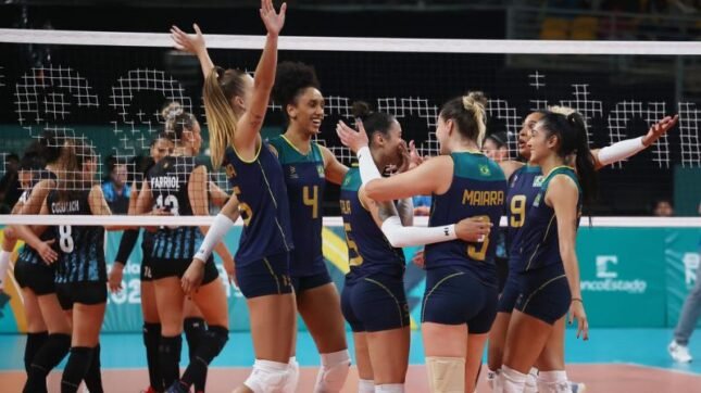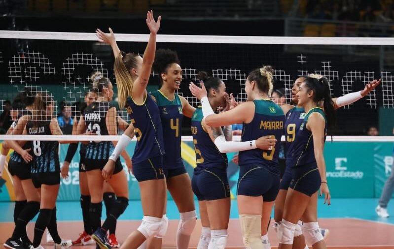 O Brasil conseguiu sua segunda vitória nos Jogos Pan-Americanos de Santiago 2023, no Chile, e garantiu vaga na fase eliminatória do vôlei feminino. A equipe dirigida por Paulo Coco venceu a Argentina por 3 sets a 0 (25/13, 25/20 e 25/18), neste domingo (22/10), na Arena do Parque O’Higgins, e lidera o Grupo A. A maior pontuadora foi a oposta Sabrina, com 15 acertos.