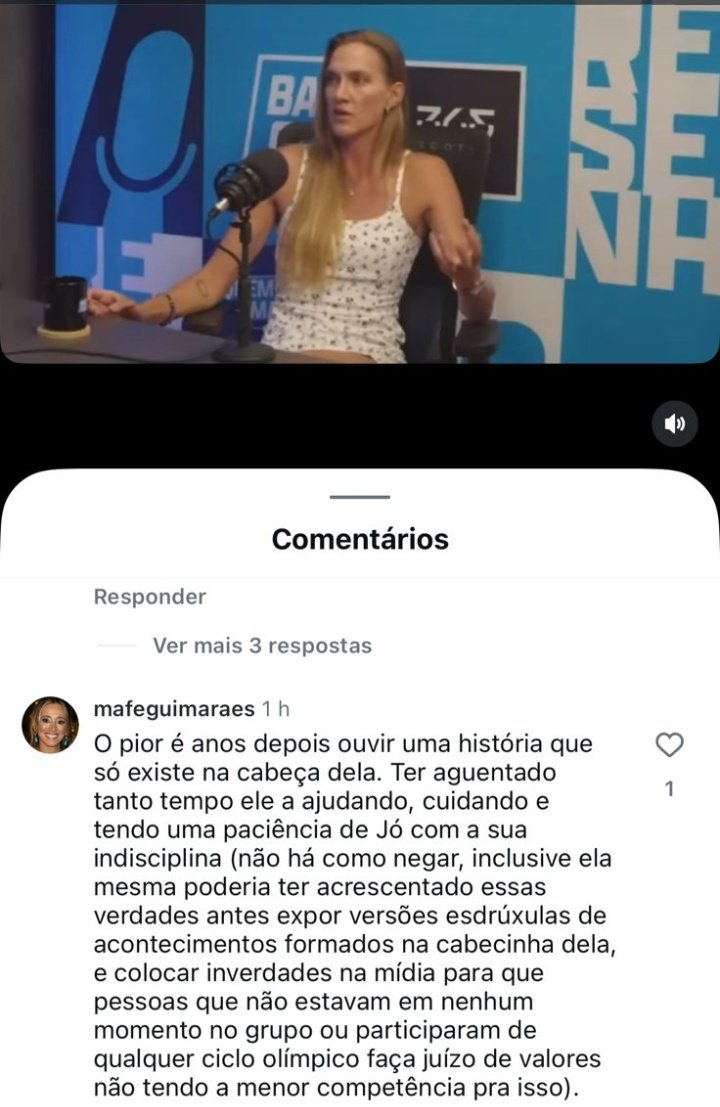 Instantes após o post, Mafê apagou o comentário, mas imagens da fala já eram debatidas pelos fãs de vôlei, que se dividiram entre Mari e Zé Roberto.