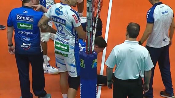 Vôlei: titular do Minas escorrega no suor na quadra, se lesiona e sai irritado