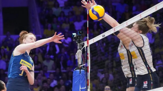 A Seleção Brasileira até se aproximou, principalmente com a sequência de quatro pontos até empatar em 19 a 19 – que ocorreu após bloqueio de Júlia Kudiess e ace de Helena. Mas, na longa parcial, a Itália impôs qualidade no fim – a genialidade da levantadora Orro apareceu em 21 a 20 com uma bola de segunda -, e o Brasil finalizou a participação na etapa do Rio da VNL com derrota: 29 a 27.