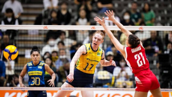 Foi um dia especial para Júlia Bergmann. A ponteira de 24 anos teve a sua melhor atuação pela Seleção Brasileira na Liga das Nações Feminina de Vôlei (VNL) de 2025 na vitória sobre a Polônia nesta quarta-feira (11/7) e ainda viralizou nas redes com um lance em que grita ao pedir o passe e faz o ponto.
