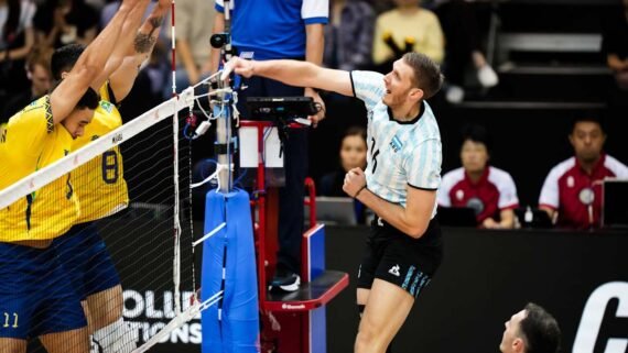 Oposto da Argentina que deu trabalho à Seleção de vôlei de Bernardinho na VNL é filho de ex-jogadores das Seleções de URSS e Rússia e cresceu na Espanha