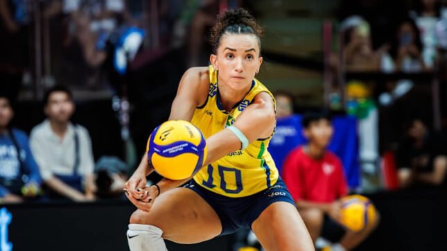 Já contra Porto Rico, a capitã do Brasil desacelerou e fez “apenas” oito pontos. Diante da República Dominicana, foram 21 bolas cravadas para chegar à marca de 65 pontos no torneio, com uma média superior a 16 por jogo.